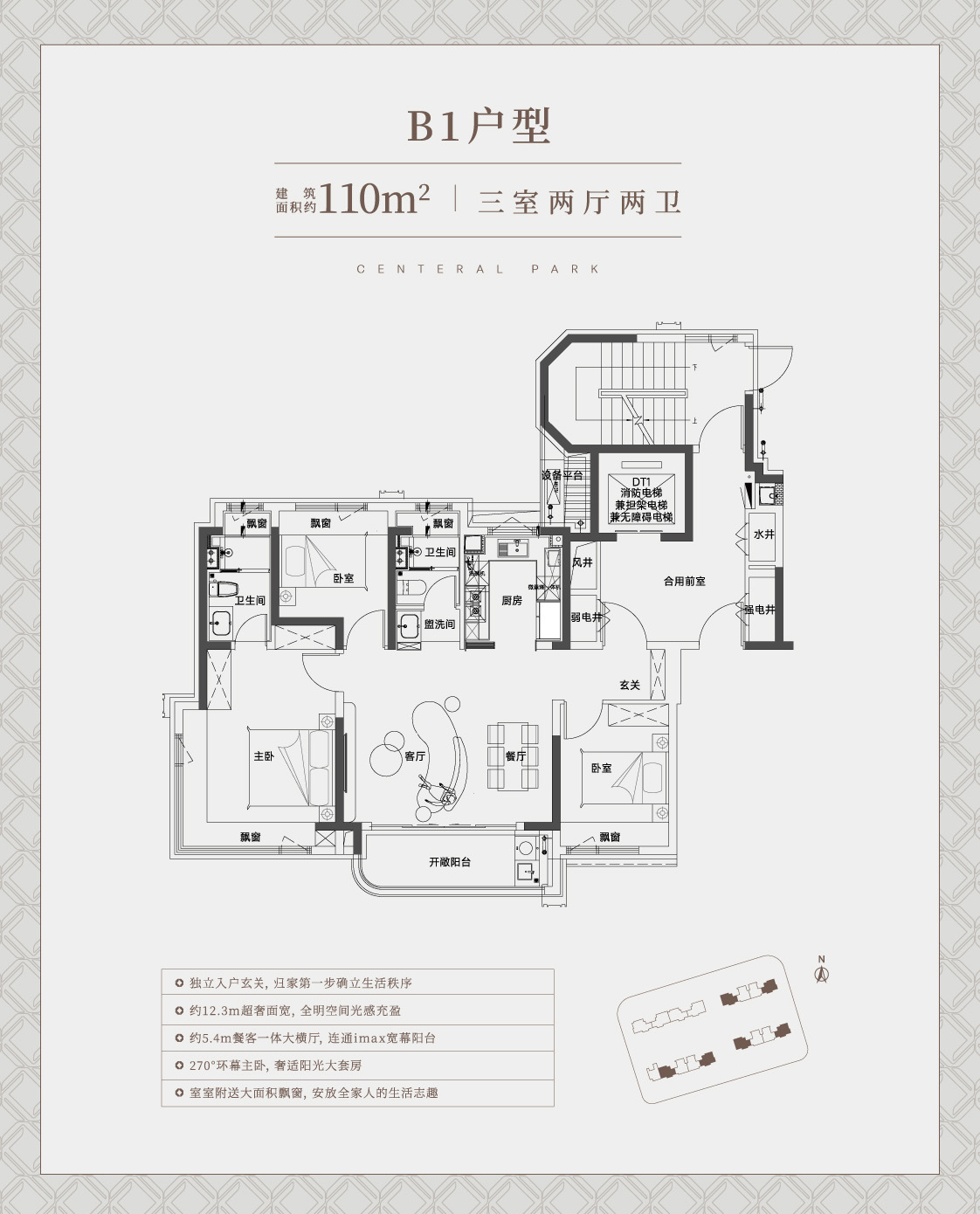 3室2厅2卫 建面110m²